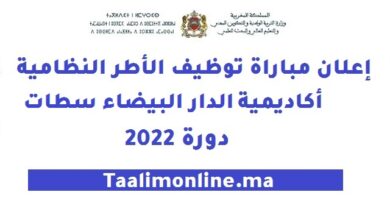 إعلان مباراة توظيف الأطر النظامية بأكاديمية جهة الدار البيضاء سطات – دورة 2022