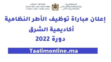 إعلان مباراة توظيف الأطر النظامية بأكاديمية جهة الشرق – دورة 2022
